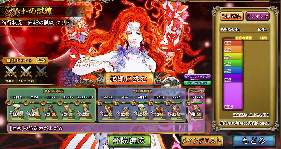 試練40を越えた辺りから、絶望S周回面子を試練にシフトしたので全てのP確保には全く届かず。