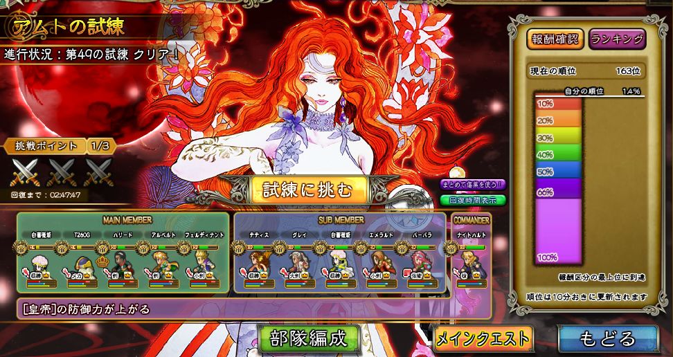 今回はBossが癒しめという事もあって48戦目最終で初の全滅↑。