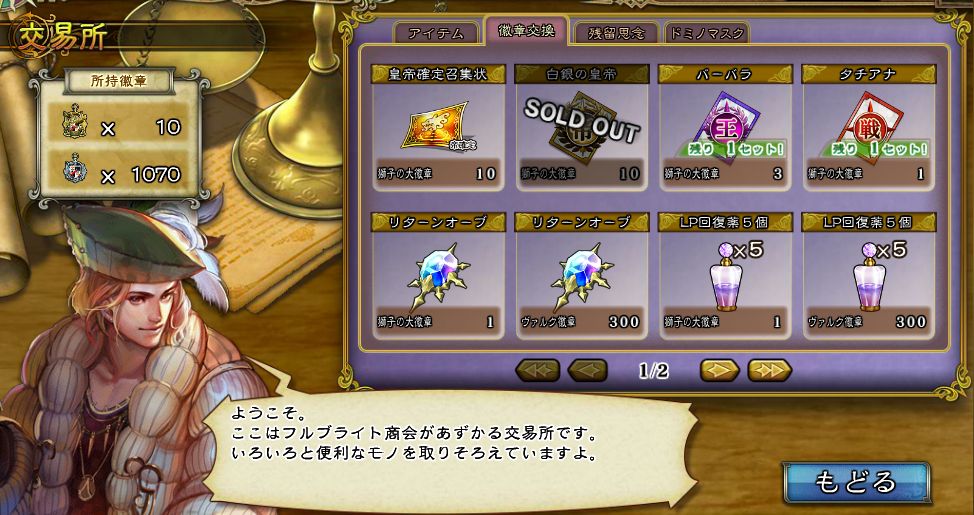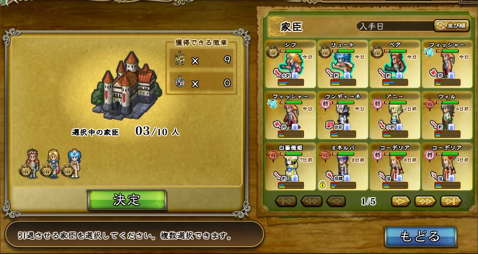 将来的に育成して使いたいキャラはそのままに、おそらく使わない気がする帝を徽章化。