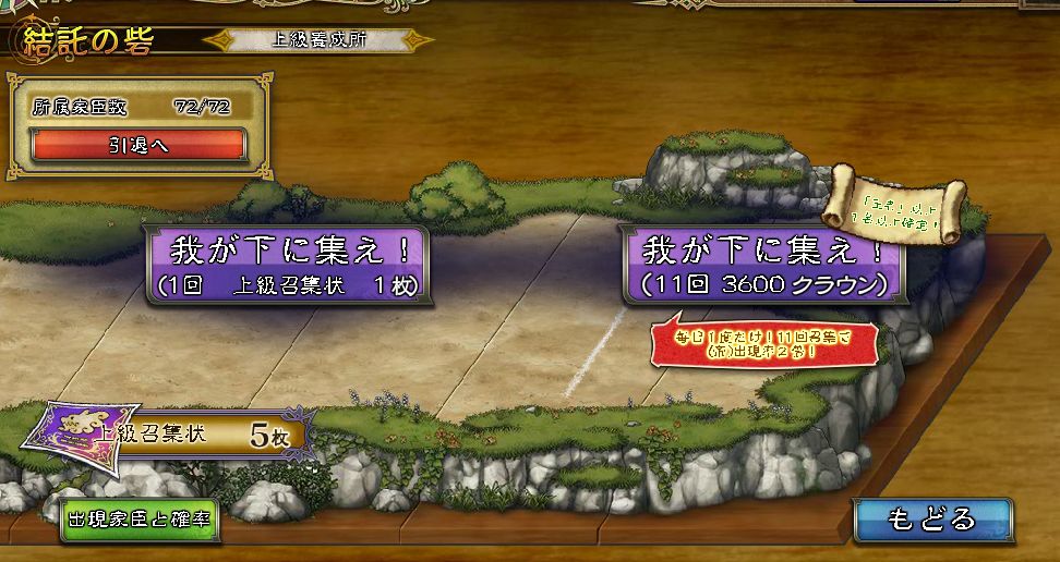 管理人はアプデの時点で100日以上150日未満のカテゴリーだったらしく、上級召集状×5と1500クラウン(うる覚え)をゲット。
