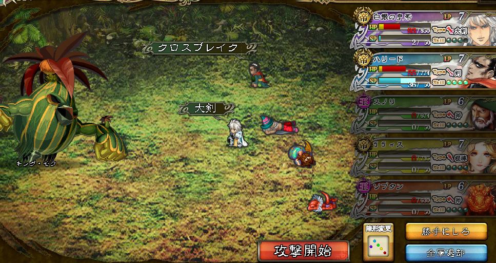 終盤は払車剣のSP半減がそれなりに追いついた新式ヴィクトールを加え、46戦目時には払車剣持ちが3名の布陣だったが、道中でのHP温存やSP管理が下手糞で結局突破ならず。