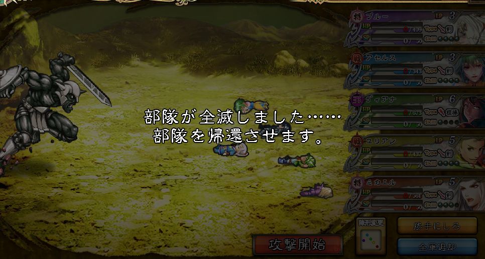 全滅画面にディアナが居るが、フルボッコでこりゃ無理と悟った時点でイベントそっちのけで育成をし、満を辞してリベンジに行った結果がこのザマである。
