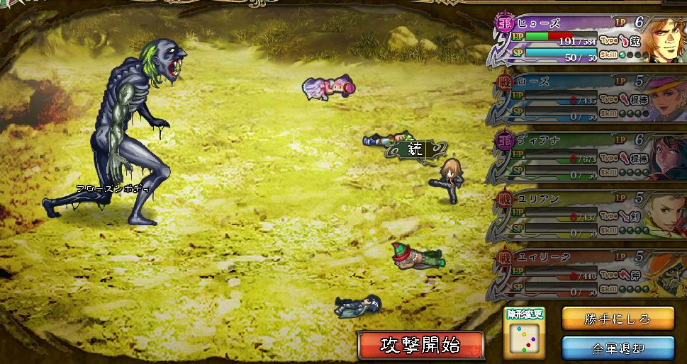 8体目のゼラチナ×4でSP回復を欲張ったせいでいらない被弾を蒙り、9体目のサイクプロスで3人が死亡、という絶望的な状況。