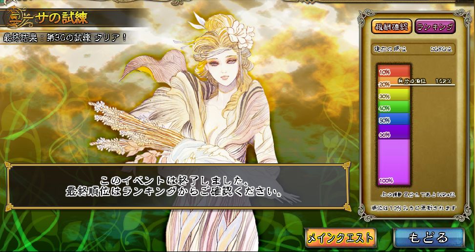 %順位は10%以上でないとあまり大差はないから気にしないが、獅子の大徽章が取れたのは個人的にかなり大きい。