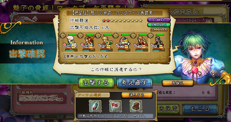 一応の応急として素早い白薔薇にムーンライトと、鈍足のテティスに元気を装備しては居るが、自PTでは白薔薇と同時に火力のあるキャラが魅了されると、テティスが解除する前に次ターンで誰かが被弾して高確率で大ダメージを受ける(^_^)