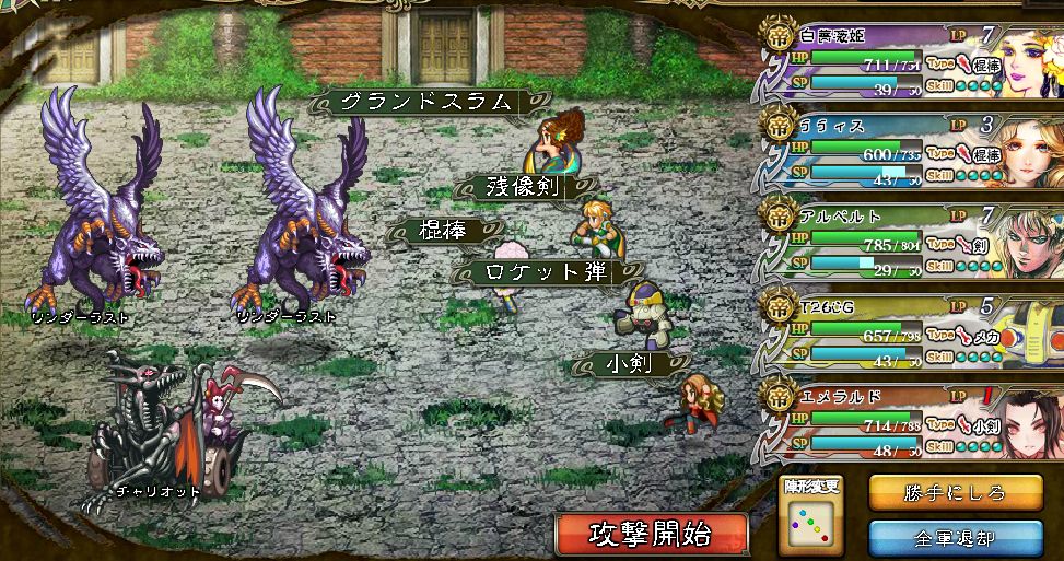 当初はスクドラ+全体奥義持ちのフェルディナントをメカorエメの替わりに入れて試行錯誤していたのだが、強化P未振り+低防御で道中が結構難渋。