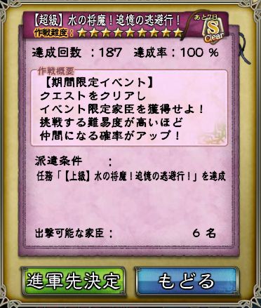 味見で絶望B級をやってみたが、Bossの水竜自体は水舞とストスキがあれば水の将魔に比べて随分と楽そうな印象。