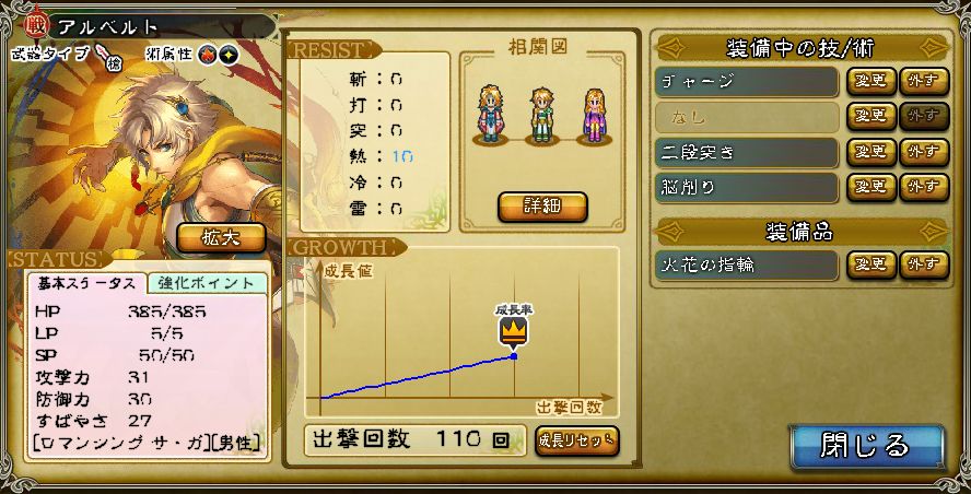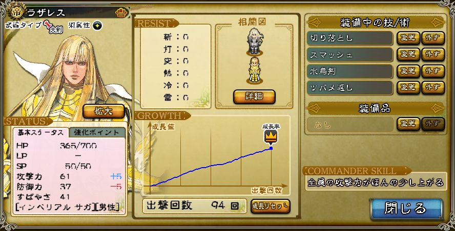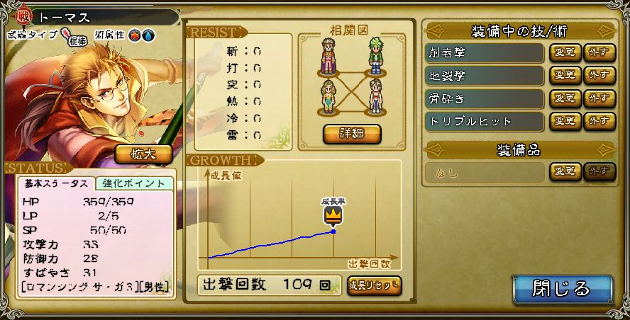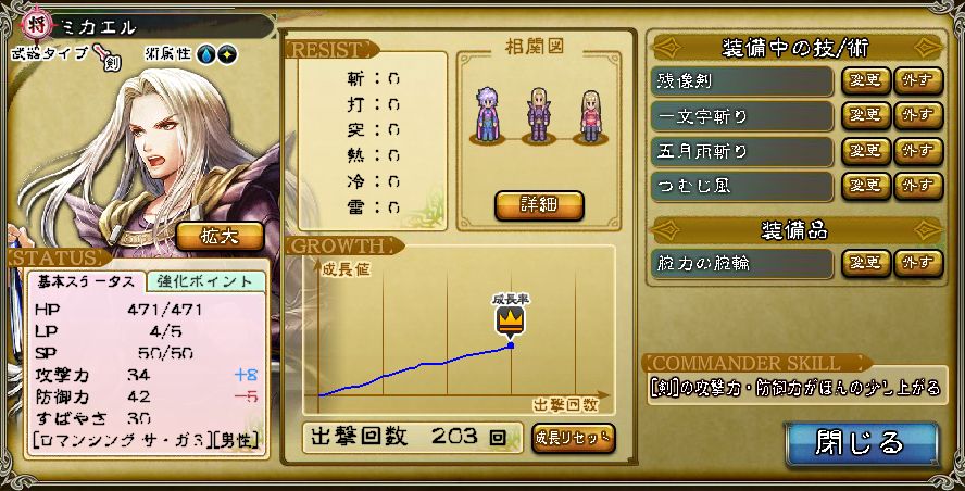 それでも、残像剣の消費SPを1桁まで下げて命中を1つ上げていれば、4章の☆6は危なげなく周回できている。