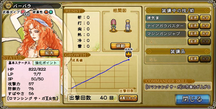 リターン後:HP822 攻57防76す56(HP+404 3値+91)