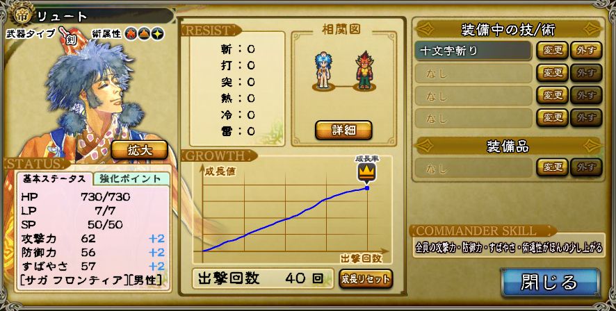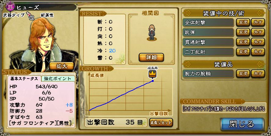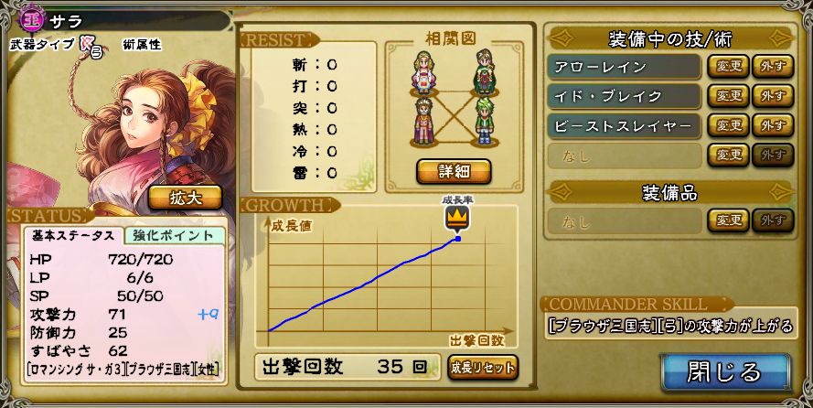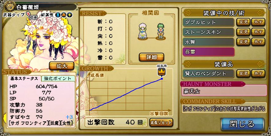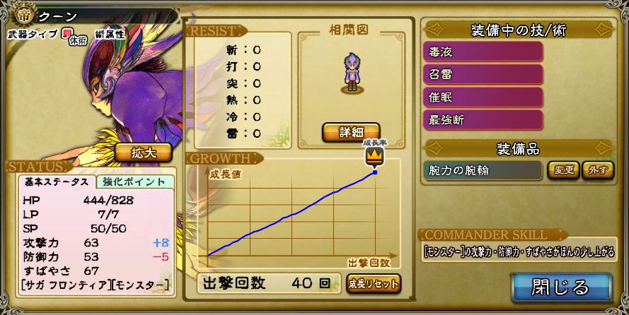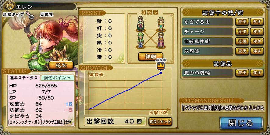 1回目ですがカンストという御の字成長。願わくば攻-8防+8だったなら言う事なしだったのだが、そこは欲は言えない。