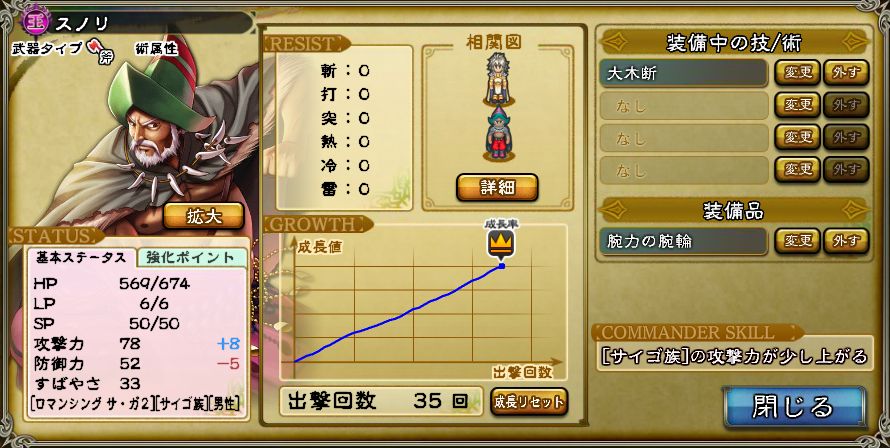 エレンの攻が37戦目を終えた時点で74で、残り3戦でカンストまで4と言う物凄く際どい所でコレをやってしまった(^_^)