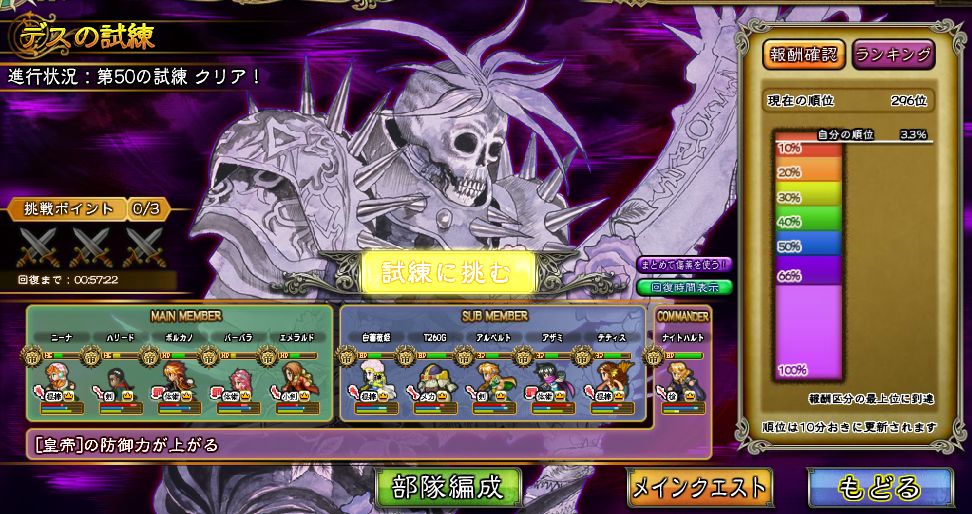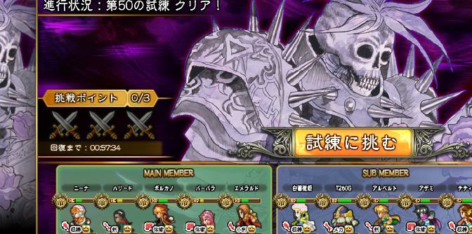 前々回の物理系試練の時は、挑戦権と傷薬の都合上50に挑戦できずに終わったが、今回はメンテ前日の夕方に挑戦できた。
