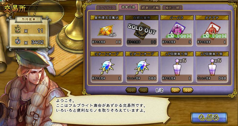 戦士引換券から久々に徽章が飛び出し、チマチマとプールした徽章は8つ。