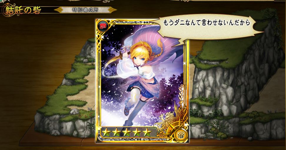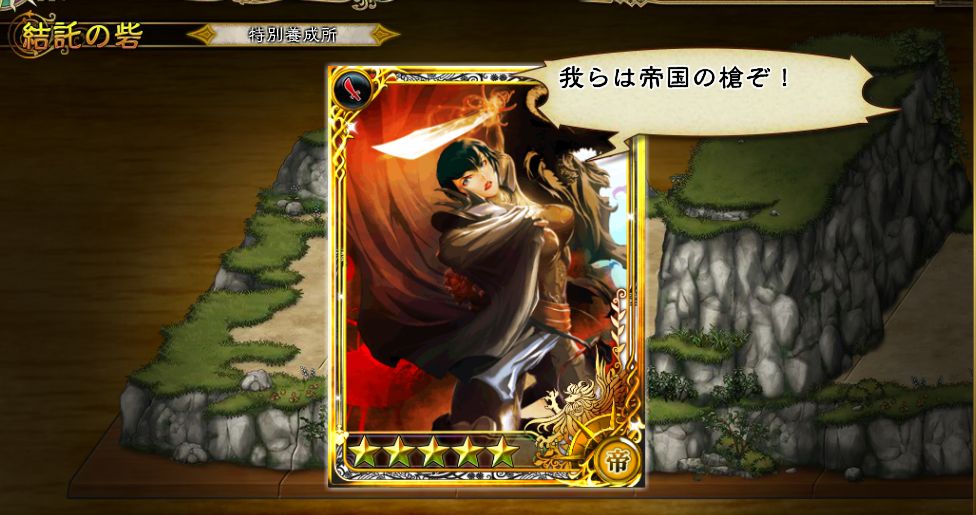 上級召集状は10枚貯めれば通常10連と同じ扱いで使えるので、道中でゲットした上級はプールするつもりだったのに、帝10%召集状と誤って使ってしまい安定の戦士というオマケ付き。