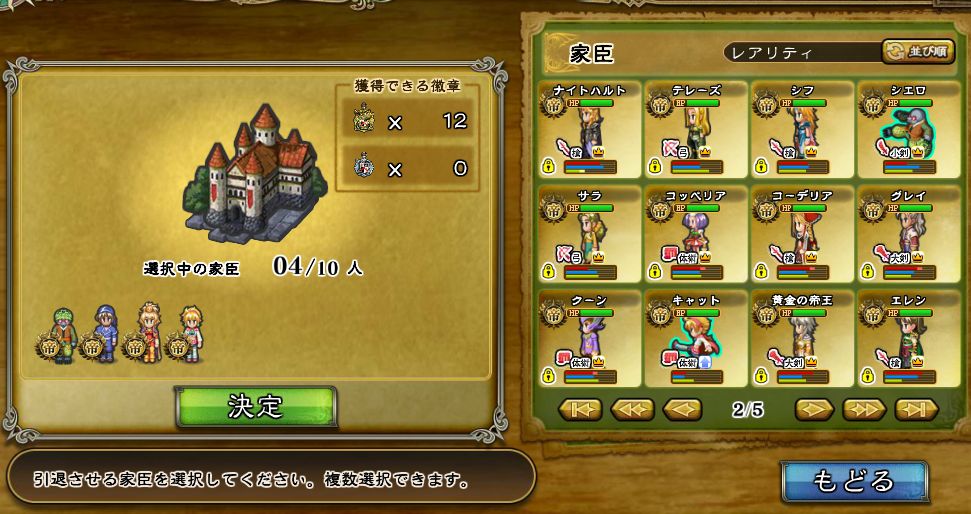4.徽章帝→サラ+リュート+エレン 獲得帝→ホーク