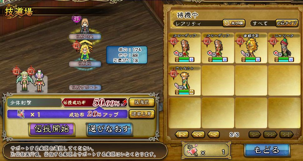 全体射撃は技Lvも高くないので適度に閃きそうだが、ただ単に技の伝授をした事がなかったので試しという意味も込めて。
