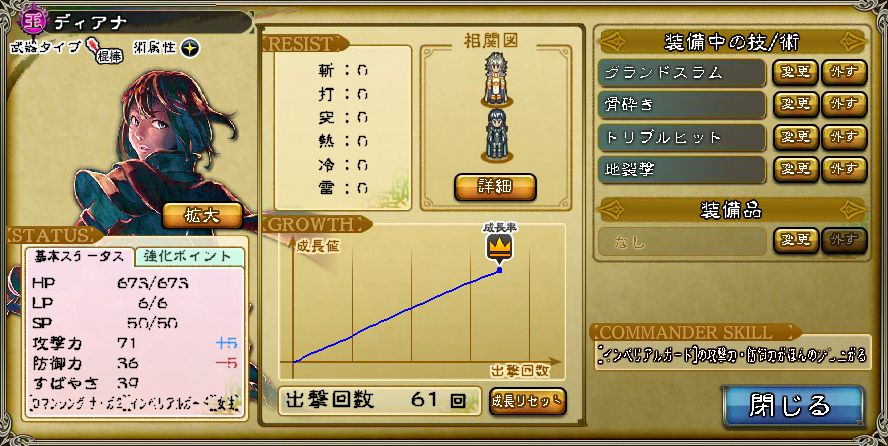 かといって、貴重なリターンを使って再育成した所でバランス型な雰囲気が醸されているので、火力に尖るとも思えず、もうそのまま手を付けずに放置している。