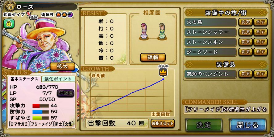 最終値:HP770 攻44防59す57 (HP+368 3値+68)