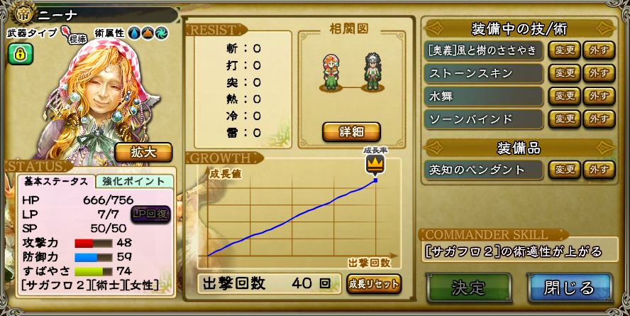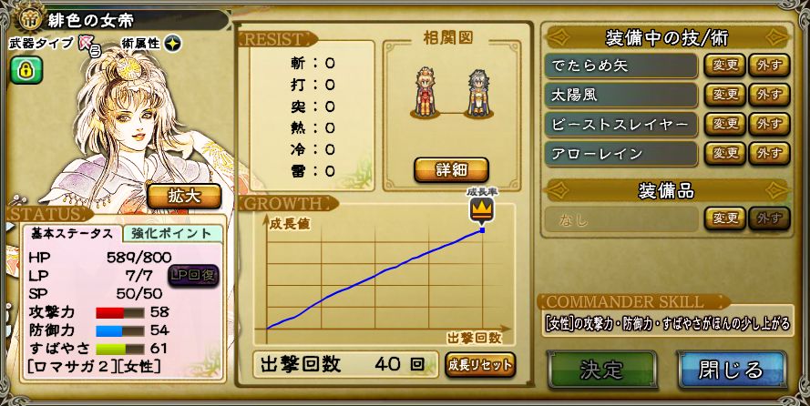 ☆9/33-40 HP+66 攻13防5す2=3値20 累+91