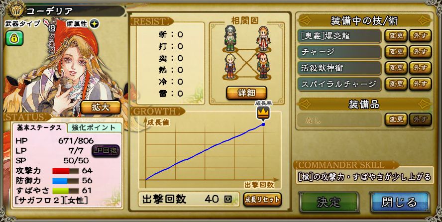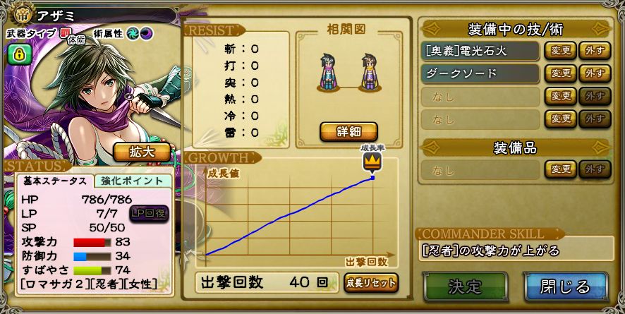 ☆9/33-40 HP+78 攻4防5す7=3値16 累+85