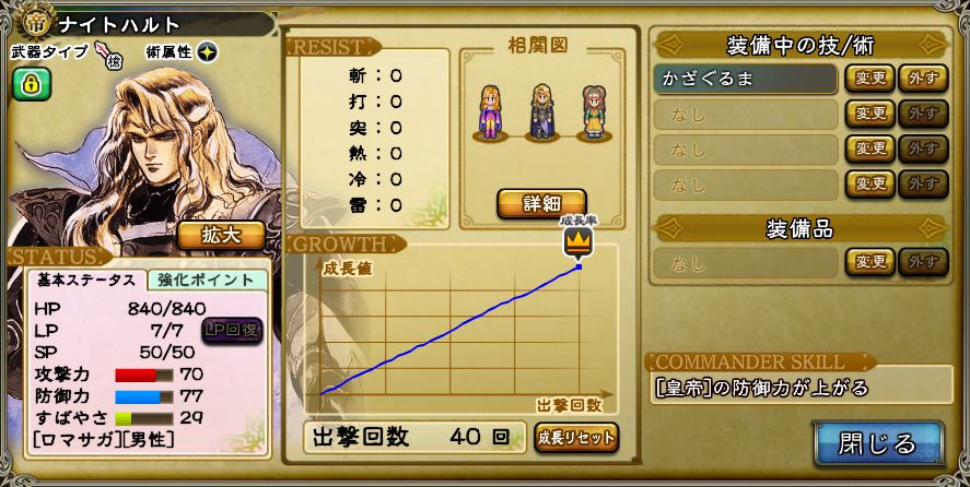 ☆8/9-16 HP+70 攻7防4す4=3値15 累+32