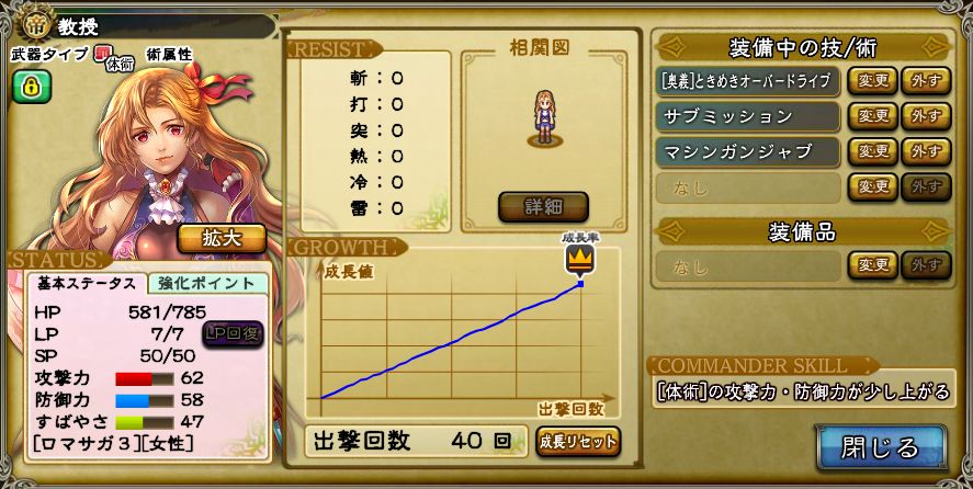 攻カンストで防もそこそこ。すは高いに越したことはないが、捨てステなので及第点。