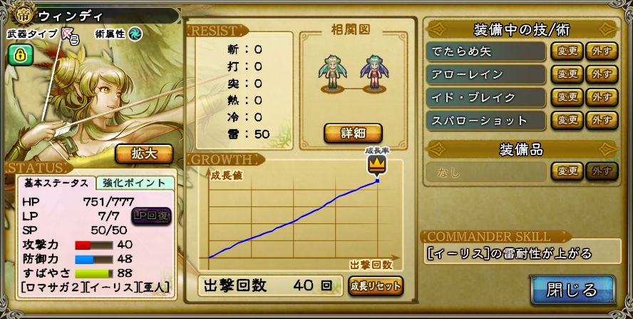 最終値:HP777 攻40防48す88(HP+372 3値+81)