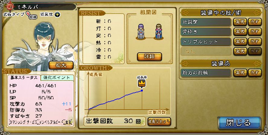 攻と防の成長回数が入れ替わってたら言うことなしだったが、開花の効力をまざまざと体験する。