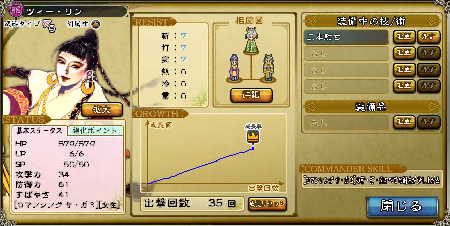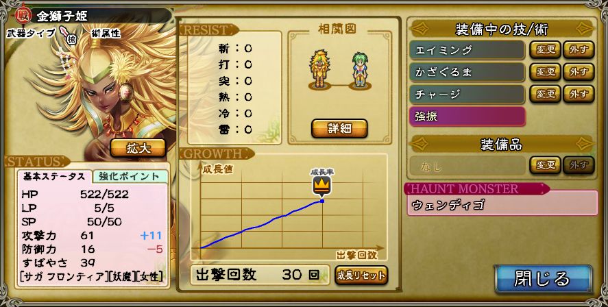 最終:HP579 攻34 防61 す41 (HP+244 3値+51)