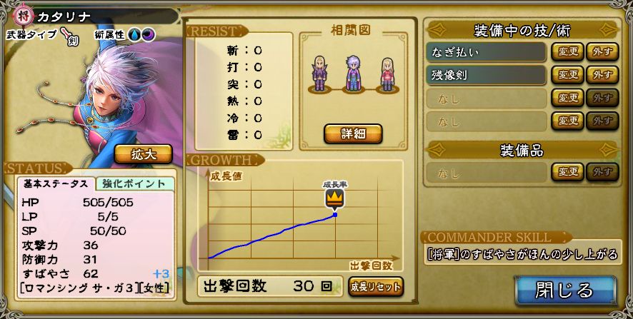 最終:HP505 攻36 防31 す59 (HP+208 3値+49)